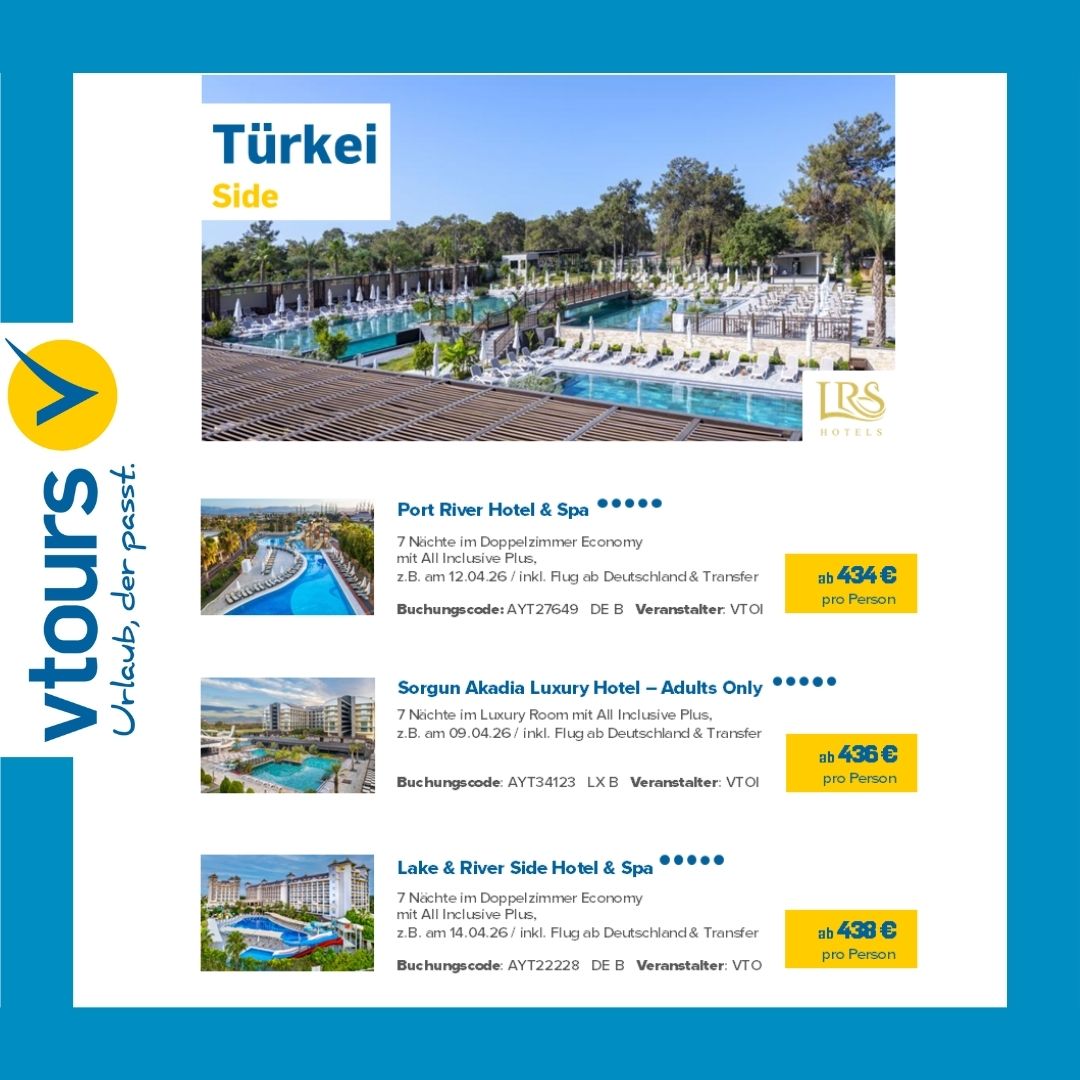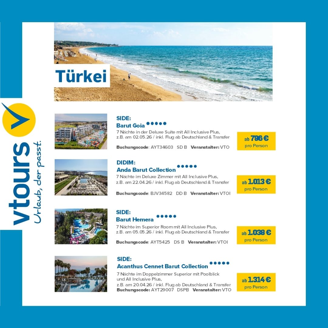 Entdecken Sie die Welt mit vtours – Ihrem Spezialisten für flexible & günstige Pauschalreisen! 🌍 Ob traumhafte Strände, pulsierende Städte oder luxuriöse Resorts – hier finden Sie maßgeschneiderte Urlaubsangebote für jeden Geschmack.