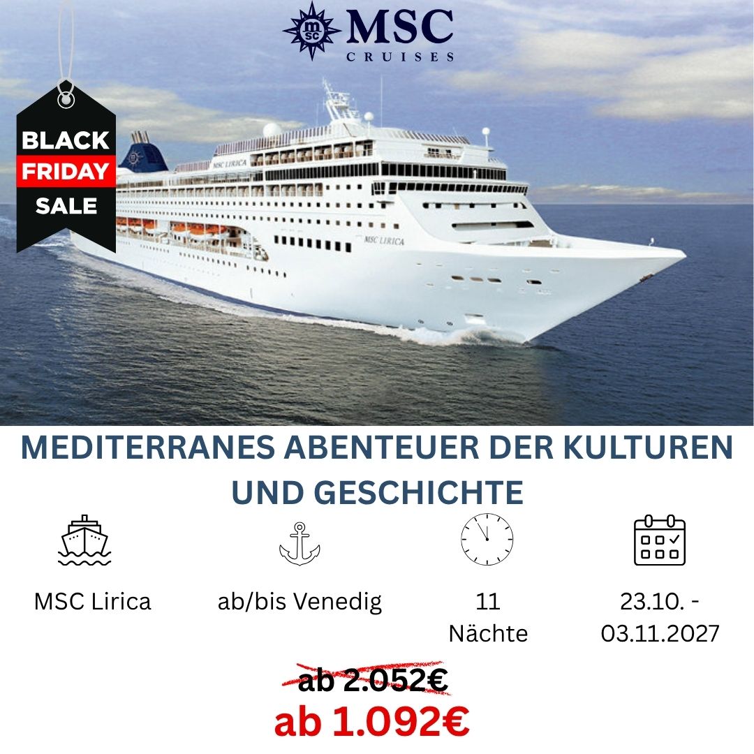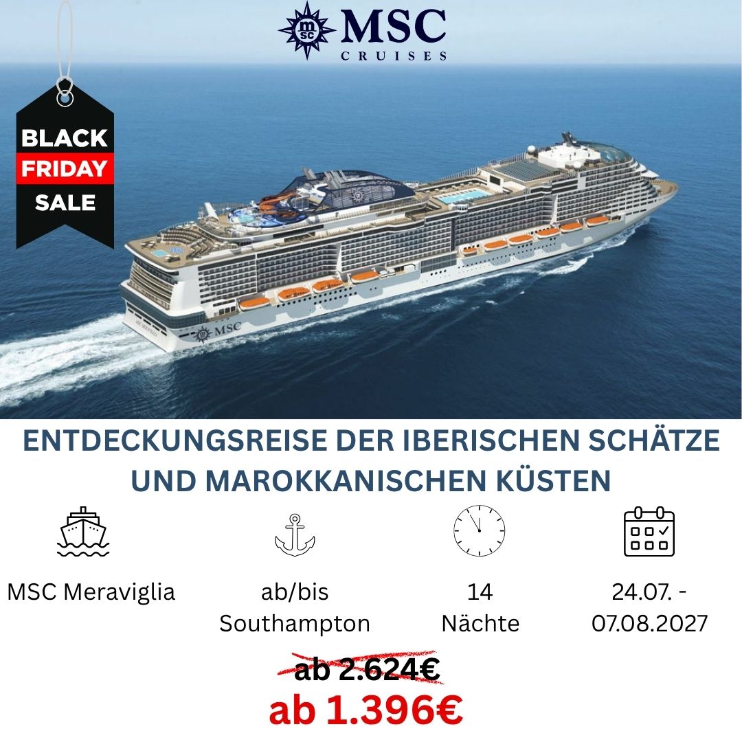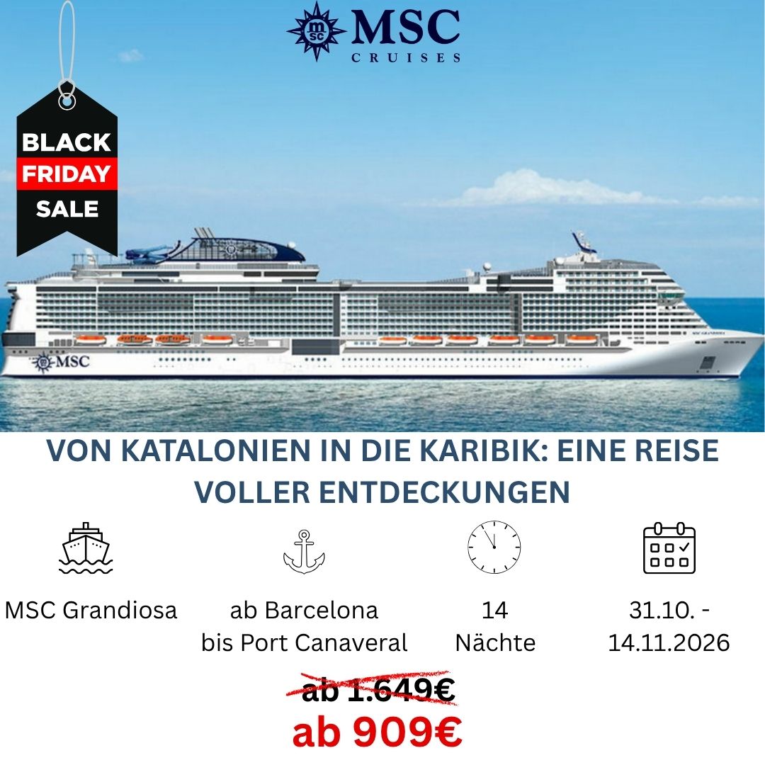 Die MSC Black Friday Deals bringen Licht in Ihre Urlaubsplanung: Nur bis zum 01.12.2025 sichern Sie sich bis zu 50 % Rabatt auf die Kreuzfahrten, von denen Sie schon immer geträumt haben.