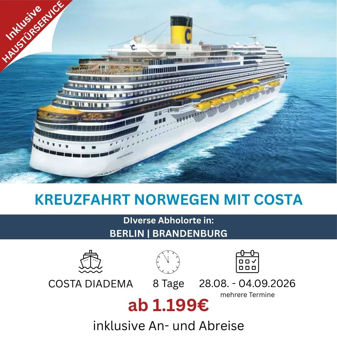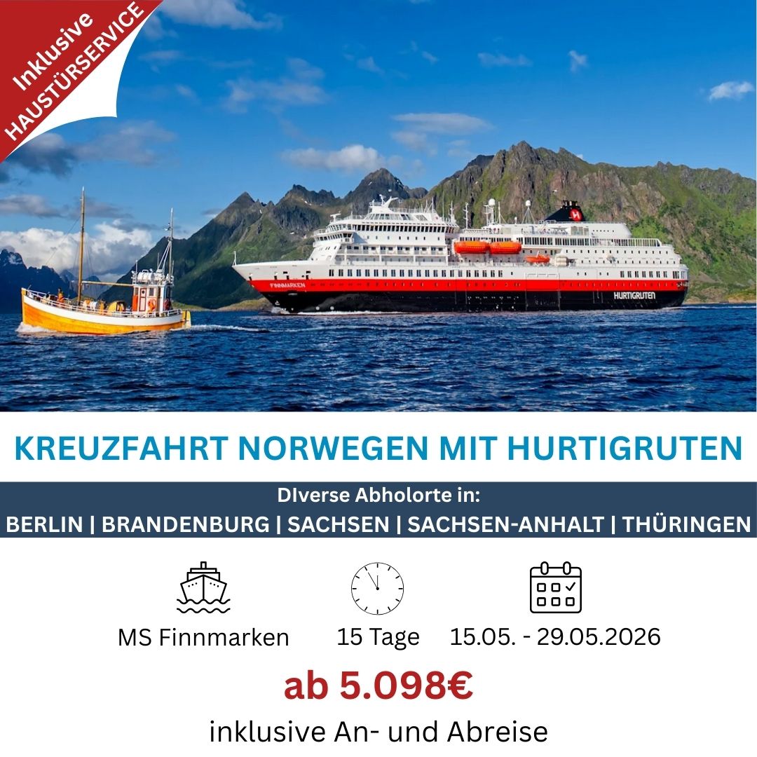 Sie möchten eine Kreuzfahrt genießen, ohne sich Gedanken über Anreise, Koffertragen oder Bahnstress zu machen? Dann ist unsere Kreuzfahrt mit Haustürabholung genau das Richtige für Sie!